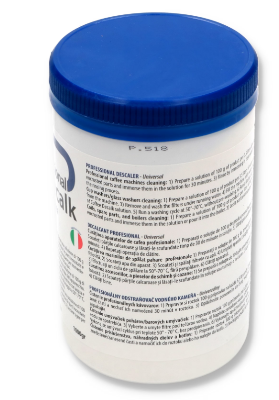 Produsul se dilueaza 100g la 3, 5 litri apa si se foloseste pentru decalcifierea aparatelor de cafea.