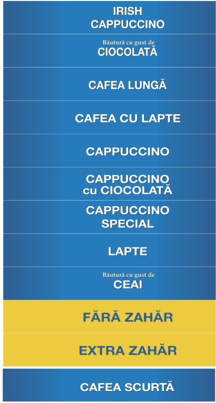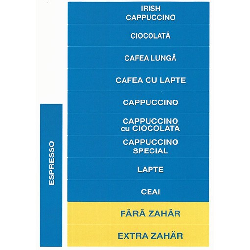 Etichete pentru automate de cafea Necta Brio 200 si Brio 250.